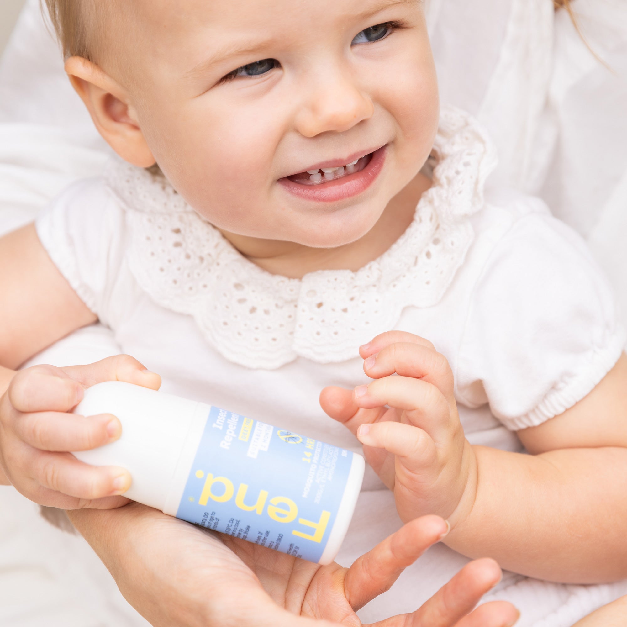 Fend is safe for use on babies as young as 2 months, but we recommend not putting any on the back of their hands as they tend to rub their eyes which can sting.